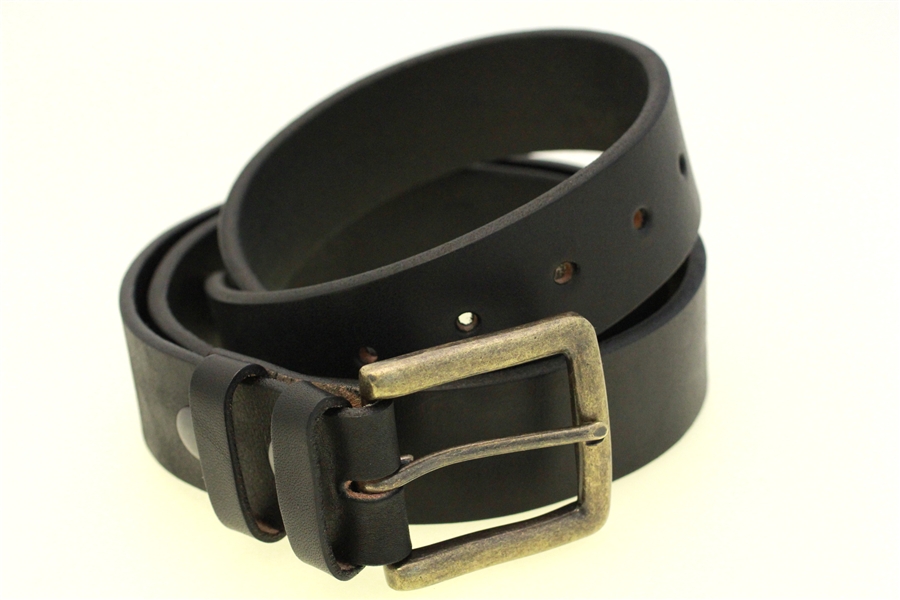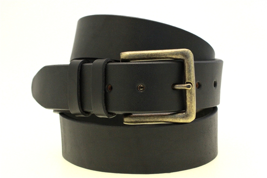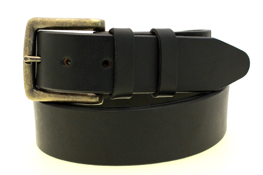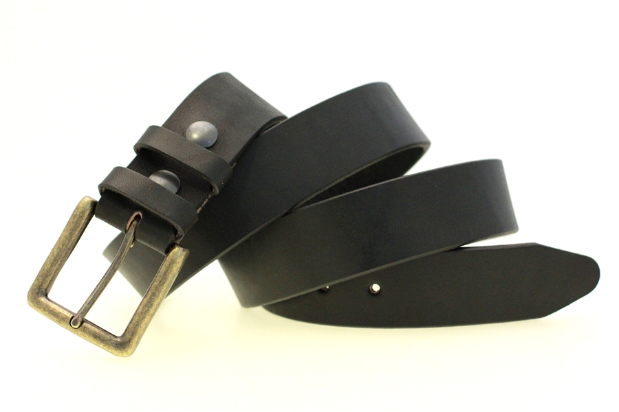 This belt is everything I expected. It is a very solid, matte black belt. One thing that surprised me is the beautiful buckle. I read " Antique brass finish" and was prepared to replace the buckle, but the buckle looks great, even where it is hidden by the belt. The attention to detail that went into crafting this belt is apparent.